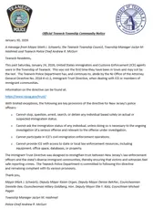 This past Saturday, January 24, 2026, United States Immigration and Customs Enforcement (ICE) agents were in the Township of Teaneck. This was not the first time they have been in town and may not be the last. The Teaneck Police Department has, and continues to, abide by the NJ Office of the Attorney General Directive No. 2018-6 v2.2, Immigrant Trust Directive, when dealing with ICE or members of immigrant communities.