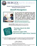 The Bergen County Department of Human Services Division of Senior Services is hosting an event at 650 American Legion Drive, Teaneck NJ on Thursday March 19th, 10am to 1pm.