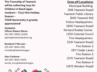 Contacts: Officer Robert Gloria - 201-837-2600 x2300. rgloria@teaneckpolice.org